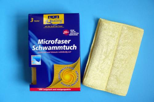 nimmt Fett und Schmutz vollständig auf sehr saugstark durch eingearbeitetes Schwammtuch reinigungsaktiv durch leistungsstarke Microfasern keine weiteren Reinigunsmittel notwendig